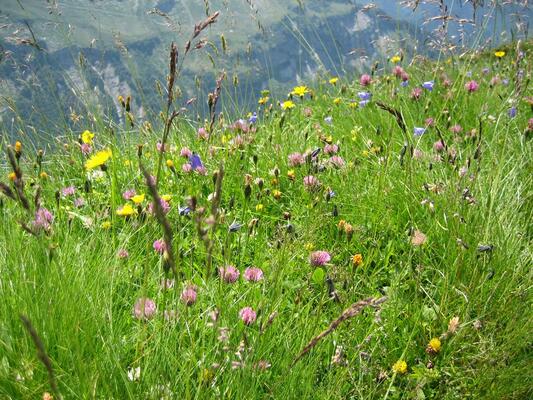 Schonend bewirtschaftete Mähwiesen zählen zu den wertvollsten und artenreichsten Grünlandlebensräumen überhaupt. Sie beherbergen im Normalfall mindestens 30 bis 60 Gräser- und Kräuterarten. Typisch sind z. B. Echtes Labkraut, Wiesensalbei, Wiesenknopf oder Wundklee. Die bunte Pflanzenvielfalt bewirkt einen Tierreichtum: Auf jede Pflanzenart kommen bis zu 100 verschiedene Tierarten, die auf genau diese Art angewiesen sind (zur Nahrung, Bestäubung, etc.): Wildbienen, Hummeln, Käfer, Heuschrecken, bunte Schmetterlinge, aber auch einige Vögel (Bodenbrüter). In solchen Wiesen können demnach bis zu 5.000 verschiedene Tierarten leben!