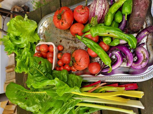 Angebaut werden verschiedenste Gemüsesorten und Kräuter, sowie ein kleiner Bereich mit Schnittblumen. Wir arbeiten nach den Prinzipien der Permakultur, das bedeutet für uns, Kreisläufe zu fördern statt sie zu unterbrechen. Wir arbeiten bodenschonend, verzichten auf schwere Maschinen und setzen auf Handarbeit, Mulch, Mischkulturen und schonen Ressourcen wo immer wir eine Möglichkeit sehen. So bleibt der Boden lebendig, speichert Wasser besser und bietet Lebensraum für zahlreiche Organismen.