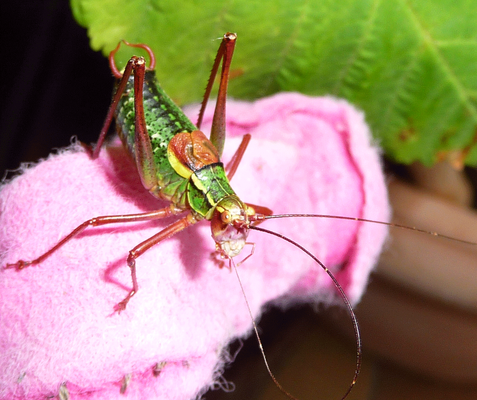 Laubholz-Säbelschrecke, Weibchen © Georg Slickers, Leptophyes punctatissima 20050822 741 part, CC BY-SA 4.0