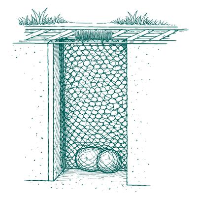 Das Netz muss unbedingt bis zur Oberkante des Gitters reichen, damit die Frösche auch die letzten Zentimeter überwinden können. Ist das nicht möglich, wickle bei Weiderosten das Gewebe zum Beispiel um einen grobborstigen Straßenbesen, sodass die Borsten nach oben schauen und das Gewebe auf der anderen Seite in den Schacht geht. Die Amphibien können dann an den Borsten das letzte Stück überwinden.
