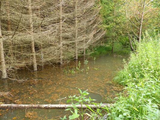 Franz Puchegger besitzt im Waldviertel mehrere Waldflächen im Ausmaß von insgesamt 25 Hektar, die er naturnah bewirtschaftet. Um die forstwirtschaftlichen Erträge der vorwiegend Jahrhunderts große Flächen trockengelegt. Franz Puchegger macht heute genau das Gegenteil: Er bringt das Wasser wieder zurück. Denn mit der Trockenlegung von Feuchtwie aus Fichten bestehenden Monokulturen zu erhöhen, wurden Mitte des vergangenen sen und Sumpfwäldern sowie der Regulierung von Fließgewässern sind viele Lebensräume für Frösche, Lurche und zahlreiche Insekten verloren gegangen. „Für eine intakte Landschaft ist das Vorhandensein von Wasser essenziell“, so Puchegger. Vielen Grundbesitzern fehle jedoch dieses Bewusstsein. Jedes Fleckerl müsse wirtschaftlich genutzt werden. Deshalb setzt sich Puchegger dafür ein, seinen Kolleginnen und Kollegen ökologisches Wissen zu vermitteln. Dazu zählt auch das Bewusstsein, dass der Biber ein wertvoller Mitstreiter bei der Wiederherstellung des Wasser-Ökosystems ist, was auch dem Wald zugutekommt. So wie auch Gelsen wichtig sind, als Nahrung für Vögel oder Kröten, auch wenn sie keiner wirklich haben will.