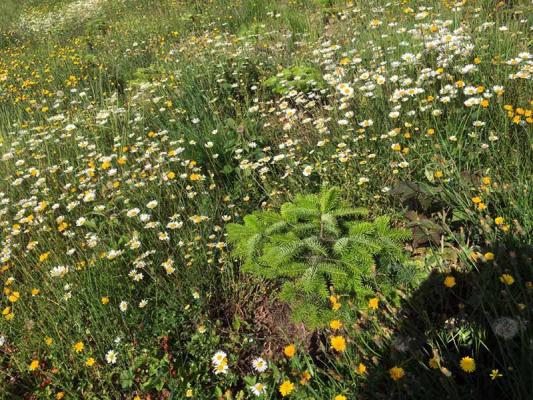 Noch dazu ist es ein Jubiläum für ihn: Seit zehn Jahren ist Johann nun neben seinem Hauptberuf als Kundenberater in einer Bank begeisterter Christbaumbauer. Die Flächen stammen alle aus Familienbesitz und Johann freut sich, mit seiner Arbeit außerdem zu einer sanften Bewirtschaftung in der Region rund um den Jauerling beitragen zu können. Das milde Wachauer Klima ist jedenfalls bestens für die Nordmanntannen geeignet. Eisbrüche wie etwa im nördlichen Waldviertel gibt es hier nicht. Die älteren Bäume kommen auch in heißen und trockenen Sommern mit ihren tiefen Wurzeln gut über die Runden. Denn auch wenn Johann sich mit Hingabe um seine Bäume kümmert – verwöhnen will er sie nicht. Und so müssen auch die jungen Bäumchen im Sommer ohne extra Wasser auskommen.