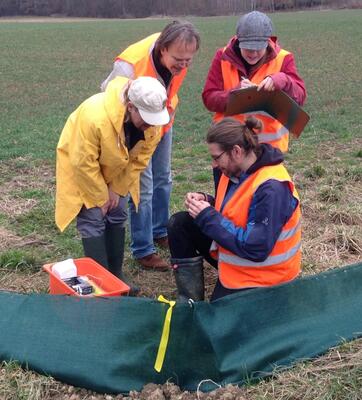 In der Steiermark sind etwa 450 bekannte Amphibienwanderstellen an Landesstraßen identifiziert. Davon werden rund 70 aktiv betreut. Das heißt, entweder gibt es eine fixe Anlage oder es gibt Helferinnen und Helfer, die dort während der Frühjahrswanderung arbeiten. Die manuelle Rettung ist die weitaus gängigere Maßnahme. Dabei werden mobile Schutzzäune, sogenannte Krötenzäune, entlang der Straßen aufgestellt und davor Kübel in den Boden eingegraben. Die Amphibien fallen in die Gefäße und können so gesammelt und händisch über die Straße getragen werden. Das ist der Stand der Technik.