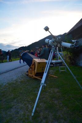 Rund 150 Millionen Kilometer. So weit ist die Erde von der Sonne entfernt, die sich nun langsam hinter den Berggipfeln des Nationalparks Gesäuse verabschiedet und uns die Reißverschlüsse unserer Jacken hochziehen lässt. Alle unsere Tipps zur richtigen Distanz waren falsch gewesen, so wie es an diesem Abend noch öfters passieren soll. Klaus Tschernschitz, Hobby-Astronom und Leiter der heutigen Sternenbeobachtung, ist geduldig und versucht noch einmal, uns schätzen zu lassen: was wenn man unser Sonnensystem platt drücken und auf CD-Größe schrumpfen würde - wie groß wäre im Vergleich dann die Milchstraße? So groß wie ein Elefant? Ein LKW, ein Haus, der Eiffelturm? Alles daneben. In Relation wäre die Milchstraße so groß wie der Durchmesser der Erde, also 12.742 Kilometer.