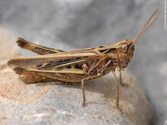 Zu den Kurzfühlerschrecken gehört zum Beispiel der Braune Grashüpfer.