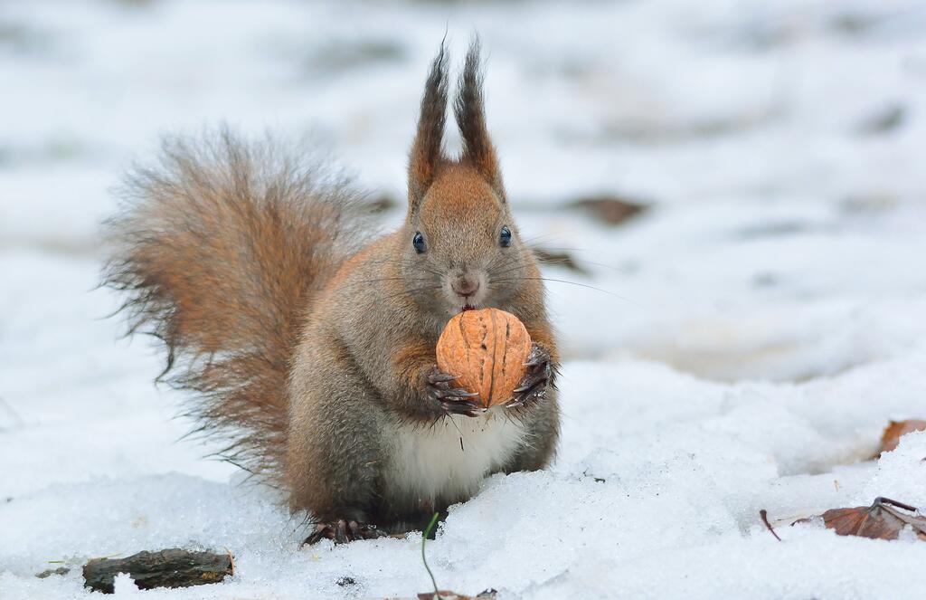 Die meisten Tiere hamstern über den Herbst ausreichend Nahrung für den Winter ein und futtern sich Fettreserven an. Um der Kälte standzuhalten, werfen sich Säugetiere in ein dichtes Winterfell und Vögel ersetzen ihre Federn durch ein daunenreiches Federkleid.