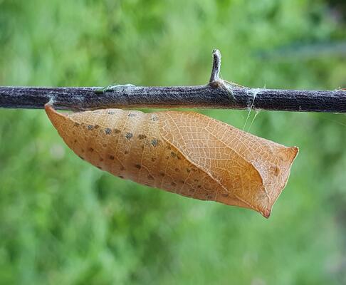 Die Raupen von Landkärtchen, Schwalbenschwanz, Segel- und Aurorafalter, sowie vielen anderen Tagfaltern verpuppen sich im Sommer oder Herbst an Stängeln oder Zweigen, sofern wir diese nicht bei Herbstarbeiten ummähen oder wegschneiden und sie damit dem Tode weihen.