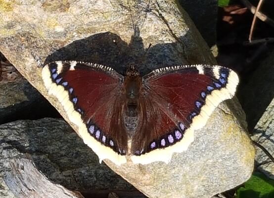 Wenn Du zudem im Winter einen dunklen Schmetterling in ungeheizten Räumen findest, dann lass ihn am besten sitzen und sorge dafür, dass er in den ersten warmen Frühlingstagen beim Erwachen wieder ins Freie findet. Ist der Raum beheizt und der Falter deshalb aufgewacht, solltest du diesen rasch an einen kühlen Ort umquartieren, wo der im Frühling erwachende Falter von selbst wieder ins Freie findet. Das kann eine unbeheizte Scheune sein, ein großer Holzstoß unter einem Vordach, eventuell auch eine Schachtel mit einem breiten Schlitz, die man an einen möglichst frostfreien Ort verbringt. Überwinternde Raupen, die man zum Beispiel mit Blumentöpfen in den Wintergarten gebracht hat und die plötzlich im Winter herumkrabbeln, bitte wieder nach draußen setzen; am besten auf einen Laubhaufen, wo sie sich vergraben können. Sie brauchen die Kälte des Winters.
